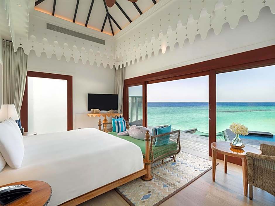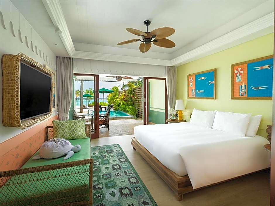 This villa features a private entrance, air conditioning and seating area. It includes a a living room, mini-bar, sofa bed, outdoor lounge, sun lounges, hammock, shower, infinity pool.