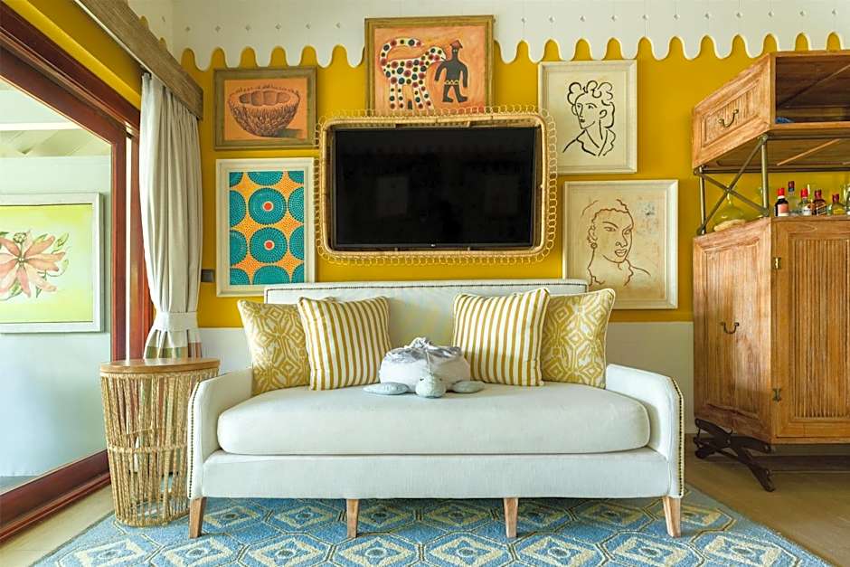 This double room has a mini-bar, sofa bed, outdoor lounge, sun lounges, hammock, bathtub and satellite TV.